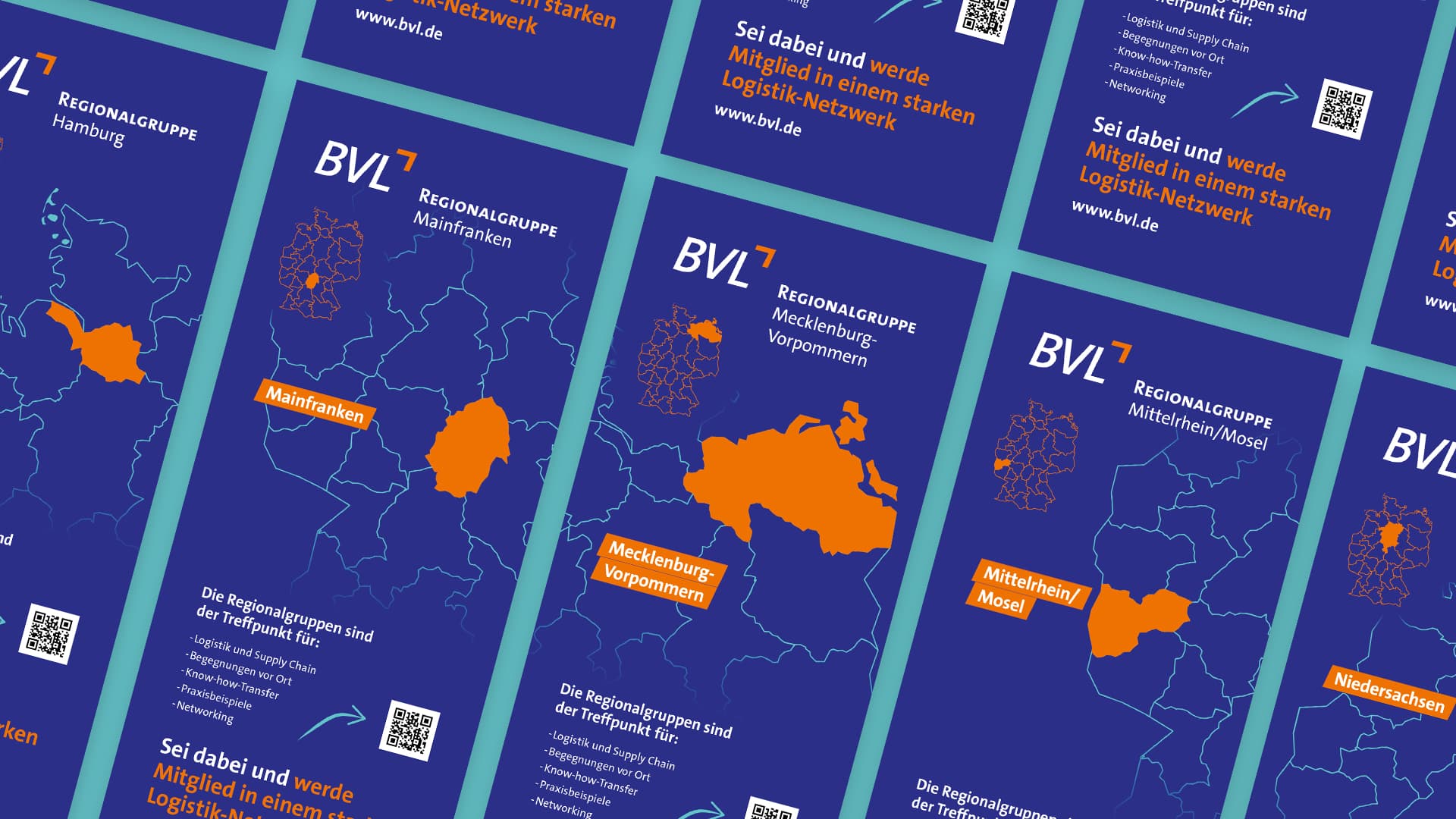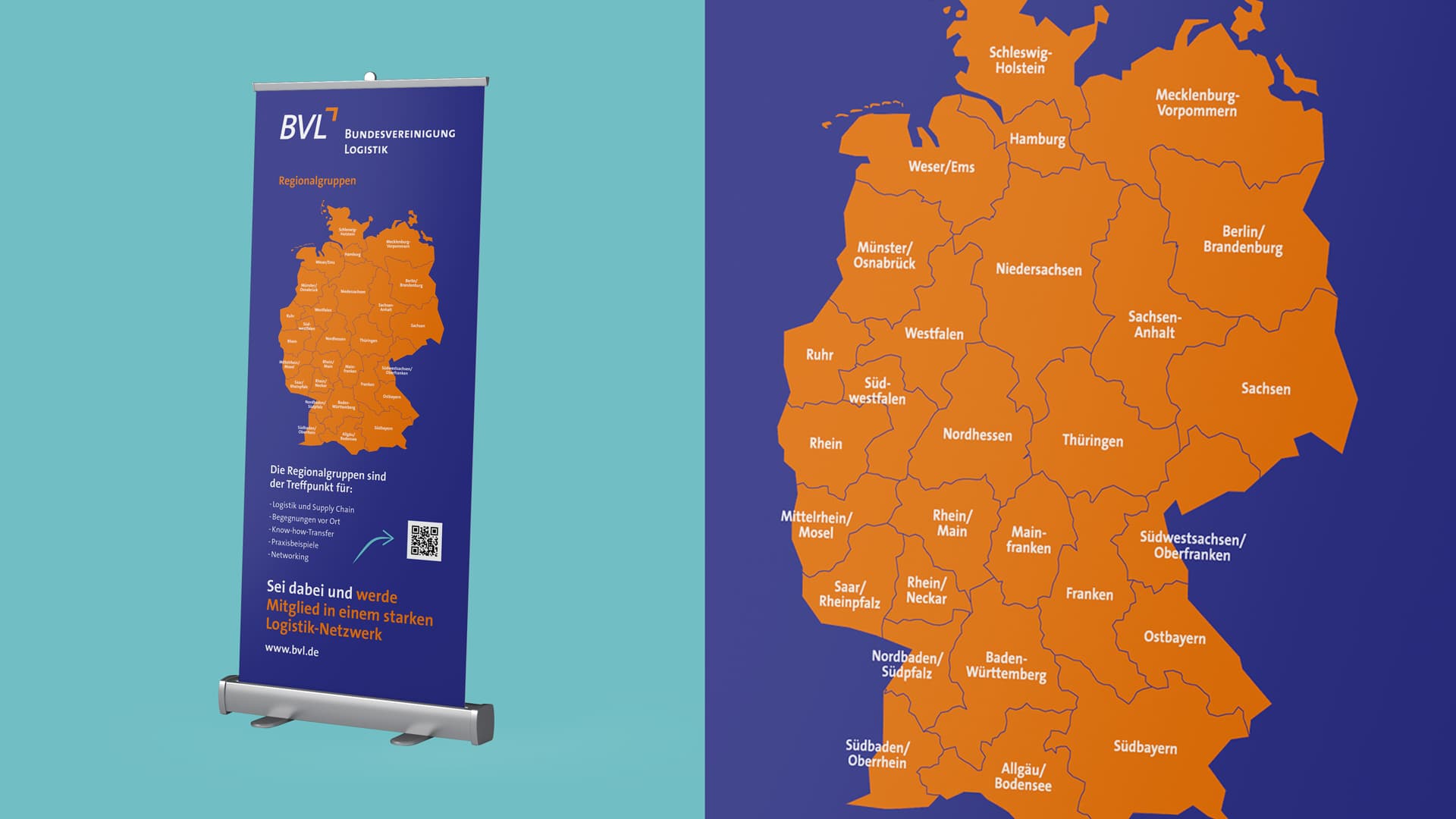 Wir haben den visuellen Auftritt der BVL für ihre Regionalgruppen strategisch neu gedacht und ein flexibles Designsystem entwickelt, das weit über einzelne Roll-ups hinausgeht: