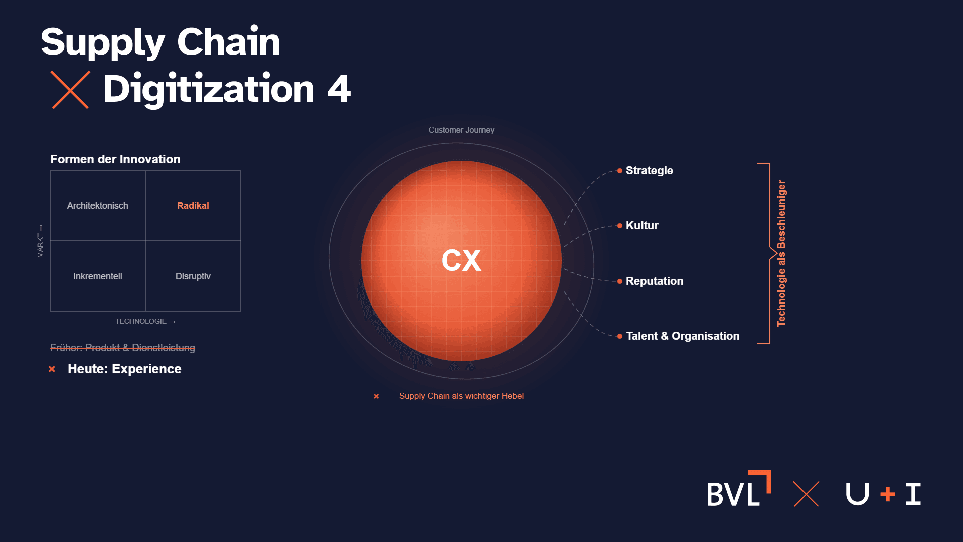 Auf den ersten Blick nachvollziehbar: Innovation benötigt mehr, als die radikale Entwicklung neuer Lösung in der Produktlandschaft. Aber warum eigentlich? Für uns als Marktbegleiter ist klar, dass sich in den letzten +20 Jahren neben dem Einsatz neuer Technologien in der Supply Chain ein weiteres wichtiges Muster für Wachstum ergeben hat. So ist jeder Berührungspunkt in der Kundenreise (UX) mittlerweile stark aufgeladen, mit Erwartungen verbunden, oder wird als Teil der Wertschöpfung ganzheitlich gedacht. Wer heute mit seinen Dienstleistungen punkten möchte, braucht also nicht nur die Investition in Zukunftstechnologien. Es braucht wirksame und starke Rahmenbedingungen, in denen diese überhaupt Anschluss finden!