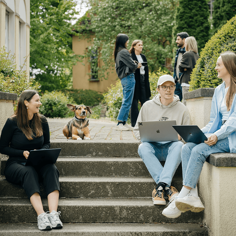 Wir haben unseren Standort bewusst gewählt: Statt eines sterilen Bürokomplexes findest du dein neues Team in einer charmanten, historischen Villa wieder. Diese außergewöhnliche Umgebung bietet nicht nur eine inspirierende Kulisse, sondern schafft auch eine familiäre Atmosphäre, die unseren interdisziplinären Austausch befeuert. Dennoch ist uns Flexibilität wichtig. Drei Tage bei uns in der Villa, zwei Tage im Homeoffice: So schaffen wir die Balance, die für uns am besten funktioniert.